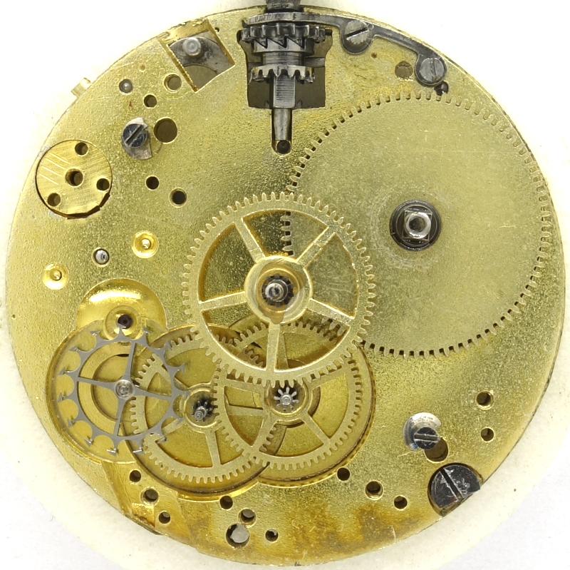 Aus dem Reigen der unendlich vielen Zylinderwerke um 1900, die noch in keinem Werksucher verzeichnet sind, stammt dieses Werk mit einem Durchmesser von 11 1/2 Linien, das ursprünglich in einer Damen-Umhängeuhr verbaut war, bevor diese, wahrscheinlich in den 1920er Jahren, zu einer Damen-Armbanduhr umgebaut wurde.