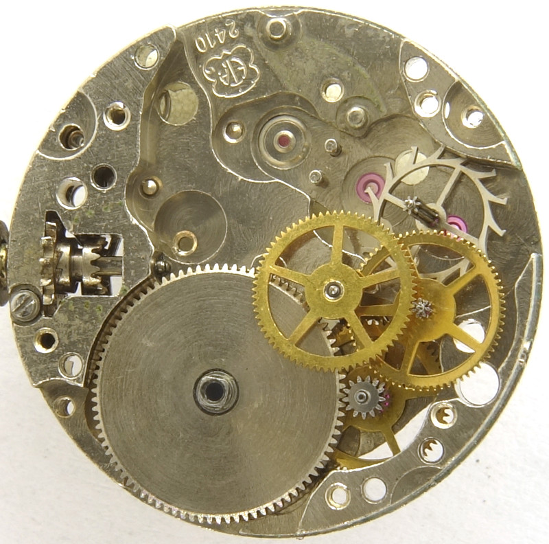 Das ETA 2410 war das erste einer ganzen Serie von “kleinen” und flachen Handaufzugswerken der ETA, das bereits die moderne Konstruktion ohne zentralem Minutenrad nutzte. Seine winzigen Maße waren ideal, um es in die damals topmodernen, besonders flachen und besonders zierlichen Damenuhren einzuschalen.
