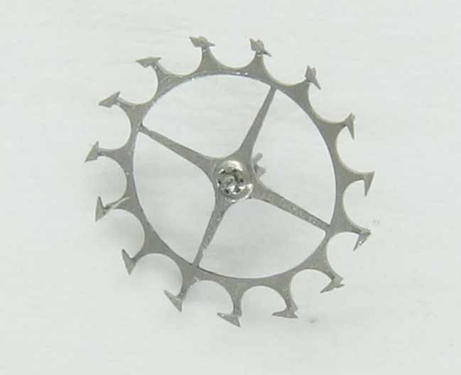 Typisch für ein Zylinderwerk ist das Räderwerk, bestehend aus Federhaus, direkt angetriebenem Minutenrad, Kleinbodenrad, Sekundenrad und Stahl-Zylinderrad.