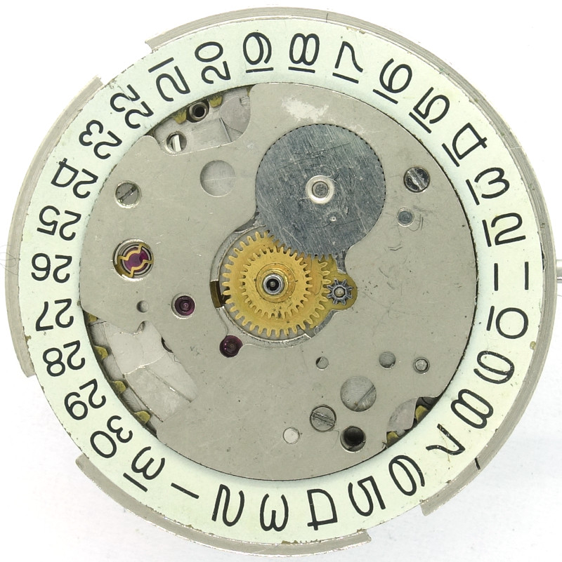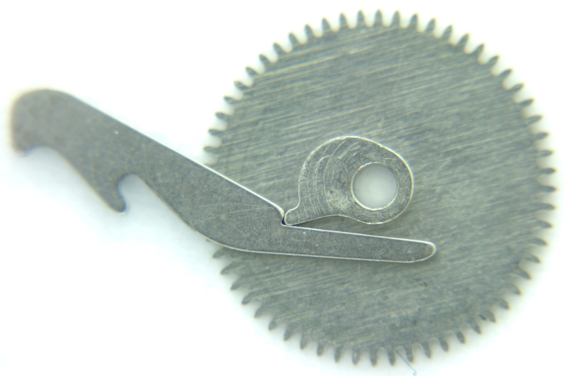 Das Poljot 2616.2H besitzt eine augenblickliche Datumsschaltung, die mit Hilfe eines Hebels und einer Nockenscheibe realisiert wird.