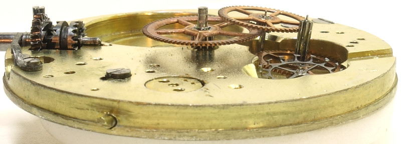 Das Räderwerk ist typisch für Uhren mit Zylinderhemmung: