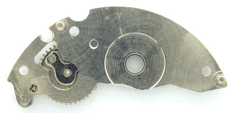 Das Kronrad ist seitlich beweglich auf der Federhausbrücke gelagert. Die Sperrklinke greift beim ETA 2472 in das Kronrad, und nicht in das Sperrrad ein; letzteres steht mit dem Automaticmodul in Verbindung.